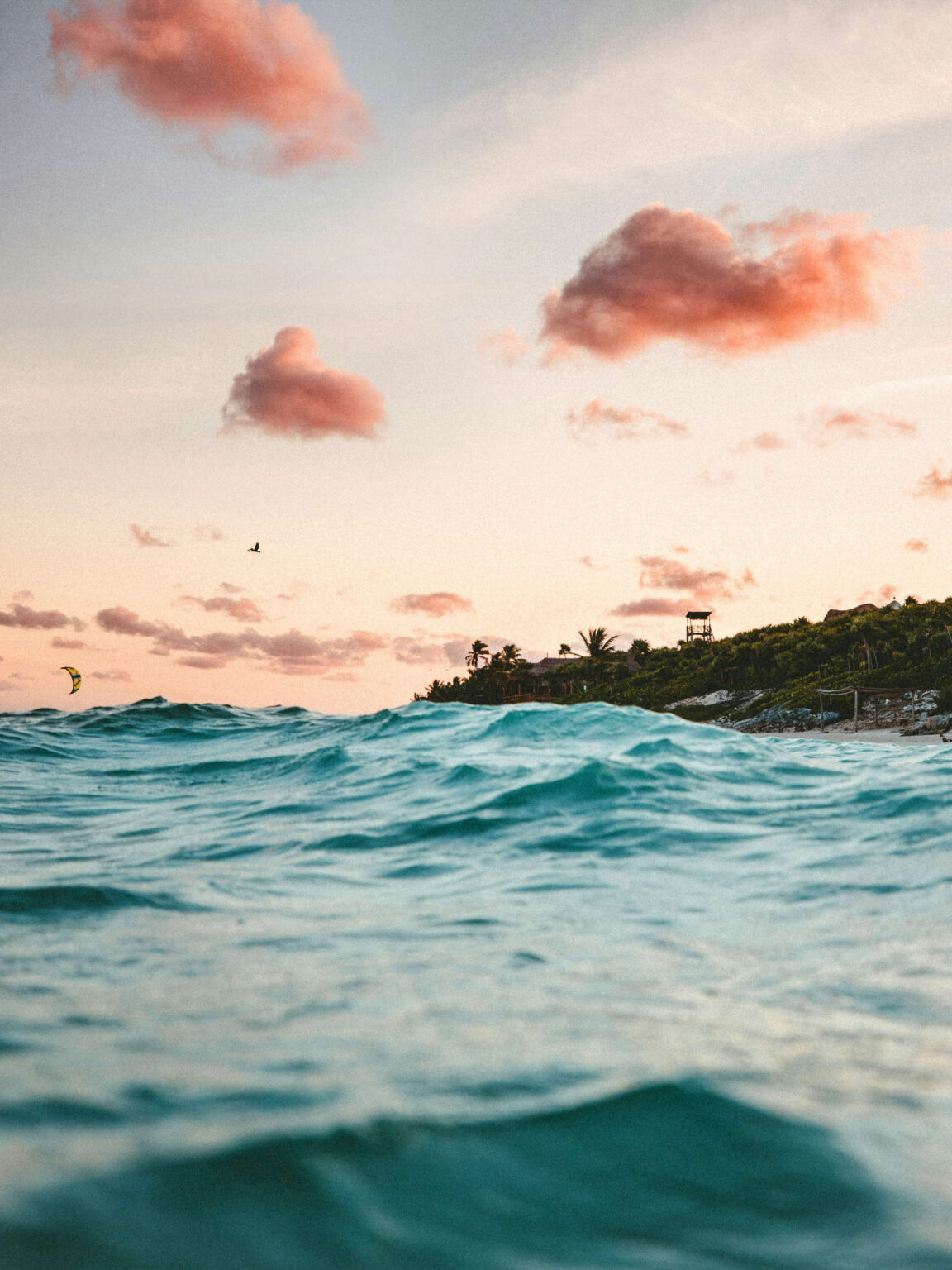 Mornings begin slowly here — sunlight glows across calm turquoise water, and the air carries hints of salt and jungle. Inland, limestone caverns open into peaceful cenotes where beams of light cut through crystal water. At sunset, the coastline shifts into warm gold, settling into a quiet stillness that feels cinematic.